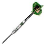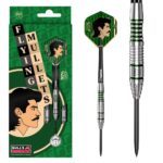 Der Flying Mullet Steel Dart ist das erste Signature-Modell von Sabri alias “Splashbrudda” – entwickelt nach seinen exakten Vorstellungen und ausgestattet mit der legendären 26-Punkte-Garantie. Gefertigt aus 90 % Tungsten, vereint das Barrel technische Raffinesse mit unverwechselbarem Charakter. Im hinteren Bereich sorgt eine ergonomische Mulde mit integrierten Pixelring-Elementen für präzisen Halt, während der mittlere Abschnitt mit einem klassischen Ringgrip optimale Fingerführung bietet. Davor sind das BULL’S Logo und die Flying-Mullet-Silhouette lasergraviert, bevor der vordere, markant gefräste Gripbereich mit axialen Vertiefungen für präzises Feedback sorgt. Komplettiert wird das Setup durch den schwarzen B-Grip 2 Schaft in Medium und den Flying Mullet Powerflite mit 100 Mikron – ein Dart, der Präzision, Kreativität und Spaß in perfektem Gleichgewicht vereint.