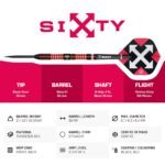 Die Sixty Serie steht für Präzision, Design und Qualität auf höchstem Niveau. Der Sixty S1 überzeugt mit einem 60 mm langen Barrel aus 90 % Tungsten, das durch seine starken, aber angenehmen Shark-Grip-Zonen optimalen Halt und Kontrolle bietet. Die Optik des black coated Barrel wird durch rot gefärbte Innenringe abgerundet. Ein zusätzliches Detail ist, das in der Mitte per Laser eingravierte BULL’S Logo. Hochwertig gefertigt und perfekt ausbalanciert, wird der Dart durch einen kurzen B-Grip 2 Schaft und den neuen Sixty Metrixx Flight mit 150 Mikron abgerundet.
