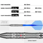 Die Caliburn Rix R2 Steeldarts wurden entwickelt, um maximale Wurfkonstanz zu erreichen. Das dual‑texturierte Barrel richtet sich an Spieler, die einen zuverlässigen und jederzeit reproduzierbaren Grip benötigen. Die spezielle Oberflächenstruktur unterstützt eine gleichbleibende Fingerposition und sorgt für ein kontrolliertes, sicheres Abwurfgefühl – ideal für ambitioniertes Training und den Wettkampfeinsatz.
