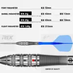 Die Caliburn Rix R5 Steeldarts wurden entwickelt, um dein Scoring‑Potenzial gezielt zu steigern. Das Torpedo‑förmige Barrel‑Design kombiniert präzise Micro‑Ring‑Griffflächen mit einem stabilen Grip‑Bereich im Mittelteil und richtet sich besonders an Spieler, die ein kopflastiges Wurfgefühl bevorzugen.