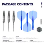 Die 90 % Tungsten Barrels bieten eine kompakte, dynamische Form. Abgerundet wird das leistungsstarke Setup durch die neuen EZ‑EVO Smooth Points sowie die aerodynamischen, blauen Caliburn SUP Tweenie Flights (No.6). Das Ergebnis ist eine kraftvolle, gleichmäßige Flugbahn mit hoher Stabilität und konstanten Gruppierungen bei jedem Gang ans Board.