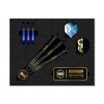 Luke Humphries hat sich mit beeindruckender Präzision einen festen Platz im modernen Dartsport erarbeitet. Die Darts, mit denen er Geschichte schrieb – als Weltmeister, Triple-Crown-Champion und Nummer 1 der Welt – sind nun in dieser exklusiven 50-Jahre-Jubiläumsedition verewigt. Eine Hommage an seinen Aufstieg, gestaltet in edlem Schwarz-Onyx mit goldenen 24-Karat-Details.