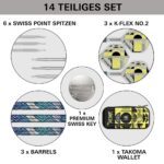 - Swiss Fire Points: 30 mm Spitzen (vorinstalliert) + zusätzliches Set mit 42 mm Spitzen.