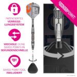 Ausgestattet mit mattschwarzen Onyx Swiss Storm Spitzen bieten die Darts sicheren Halt im Board. Dank des Swiss Point Systems lassen sich die Spitzen schnell und einfach austauschen – das passende Werkzeug ist im Set enthalten.