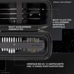 Mit dem typischen Look in Weiß, Blau und Silber fängt das Wallet den Charakter von R2-D2 perfekt ein und bietet gleichzeitig durchdachte Organisation für dein Dart-Equipment. Es bietet Platz für 6 komplett montierte Darts und verfügt über ein integriertes Fachsystem für 12 Shafts und 15 Swiss Point Spitzen – das einzige Etui, das Swiss Points sicher verstauen kann. Zusätzliche Fächer bieten Platz für Flights, K-Flex Zubehör und Werkzeuge. Die harte Außenschale und der Reißverschluss sorgen dafür, dass alles sicher und geschützt bleibt – auch unterwegs.