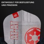 Die Flights bestehen aus robustem 100-Mikron-Material, das besonders langlebig ist und seine Form auch bei intensivem Spiel beibehält. Das Design zeigt markante imperial-inspirierte Grafiken und AT-AT-Details, die einen auffälligen, charakterstarken Look auf dem Dartboard erzeugen.