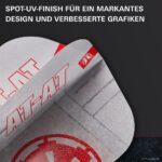 Eine Spot-UV-Beschichtung sorgt für eine leicht strukturierte Oberfläche, verstärkt die optischen Details und bietet zusätzlichen Grip an den Schaftflügeln. Dadurch sitzen die Flights sicherer und bleiben während des Spiels besser in Position.