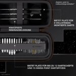 Doch das BOA Wallet ist nicht nur ein Sammlerstück: Es bietet durchdachte Funktionalität für den Dart-Alltag. Es fasst bis zu 6 komplett montierte Darts und verfügt über zusätzliche Fächer für Shafts, Swiss Points, Flights und weiteres Zubehör – alles sicher und übersichtlich verstaut.