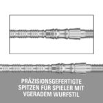 Dank Targets patentiertem Swiss Point System lassen sich die Spitzen in Sekunden wechseln. Einfach mit dem Swiss‑Tool lösen, neue Spitze einsetzen, festziehen – fertig. Erhältlich in verschiedenen Farben und Längen, bieten die TRB Points maximale Flexibilität zur individuellen Anpassung des Setups.